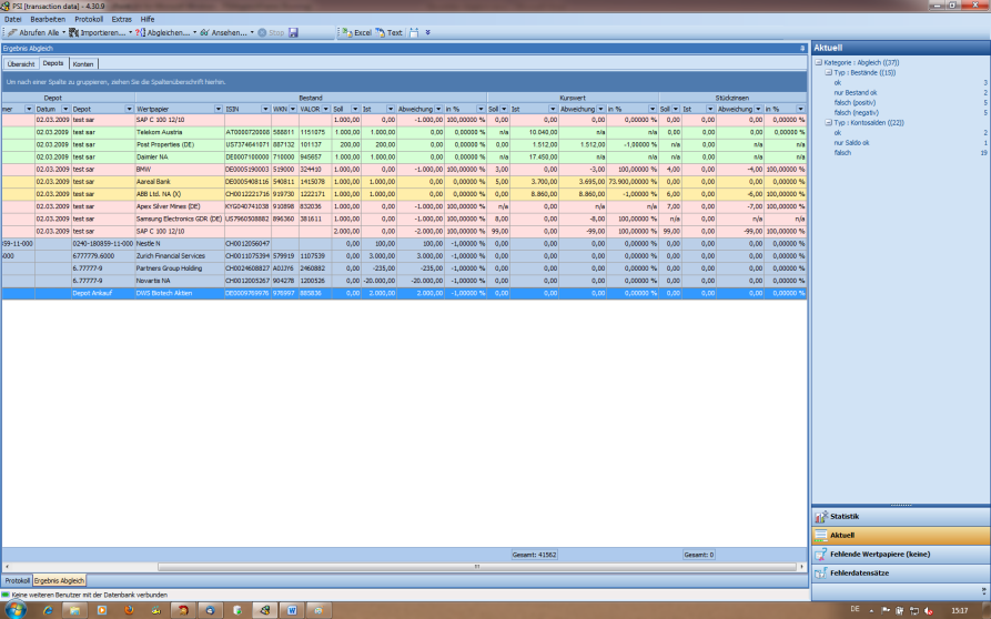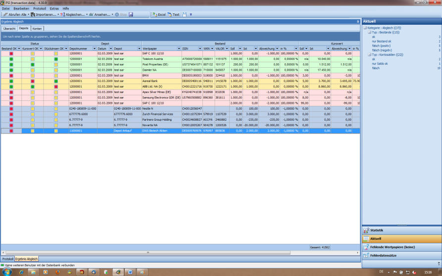 Entnehmen Sie dem Ergebnis des bewerteten Abgleichs auf der Registerkarte "Depot" folgende weitergehende Informationen gegenüber dem klassischen Abgleich: