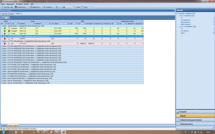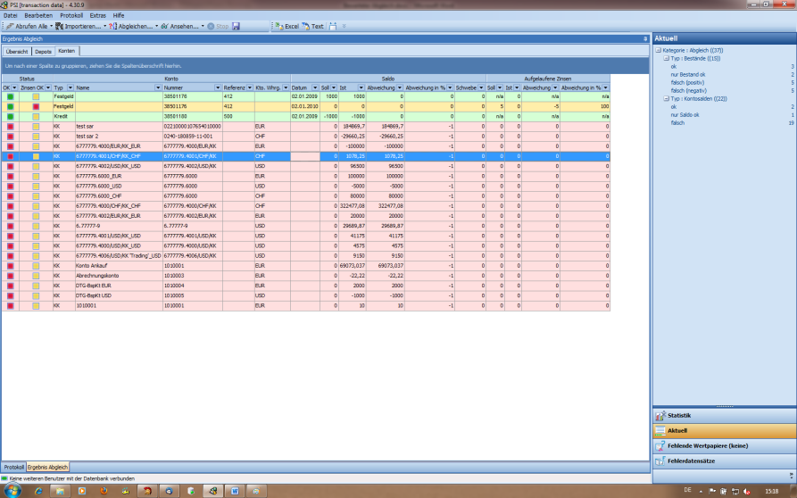 Ergebnis des bewerteten Abgleichs: Salden