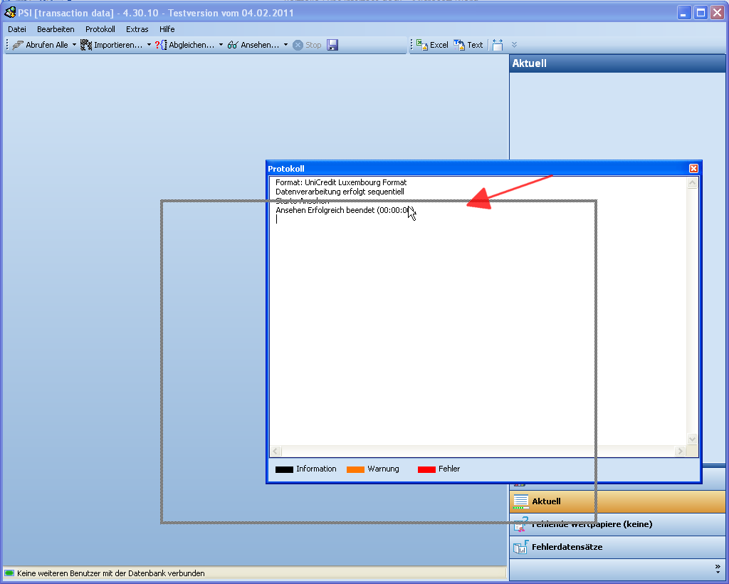 Dabei ist das Protokollfenster immer geöffnet und kann nicht geschlossen werden.