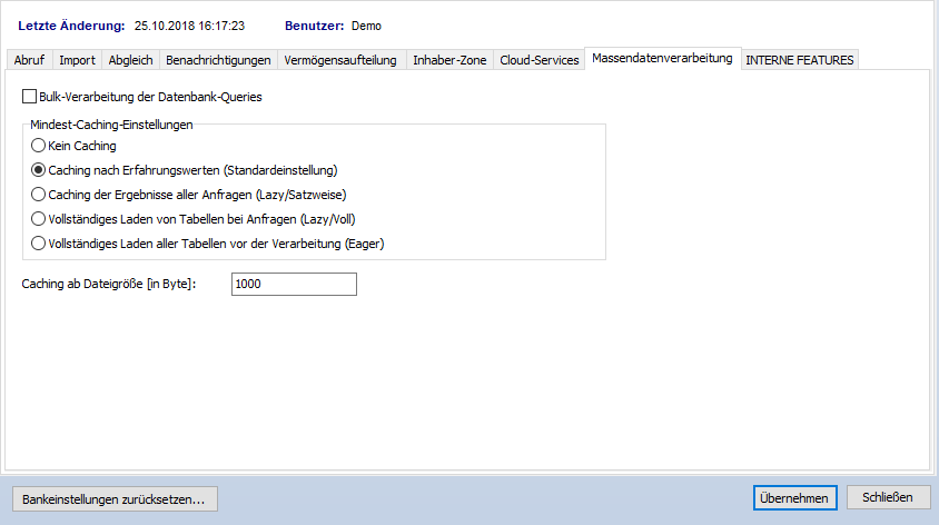 Haben Sie das Add-On "Massendatenverarbeitung" lizenziert, dann nehmen Sie auf dieser Registerkarte die folgenden Einstellungen vor: