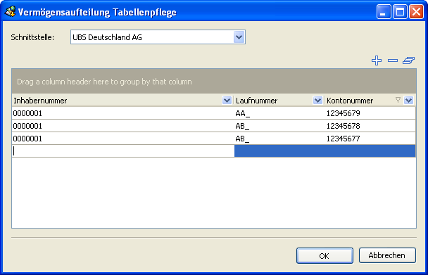 Es erscheint das Dialogfenster "Vermögensaufteilung Tabellenpflege".