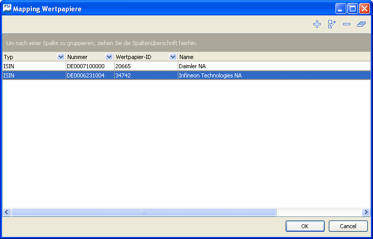 Sie öffnen das Dialogfenster "Mapping Wertpapiere" über den Befehl BEARBEITEN, MAPPING im Hauptmenü.