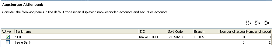 - The "no bank" entry combines all accounts and securities accounts in the default zone for which no bank is specified in Infront Portfolio Manager.