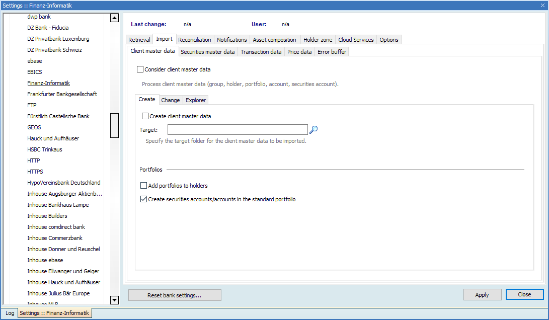 - In the "Bank" area on the left of the "Settings" window, click the corresponding bank.