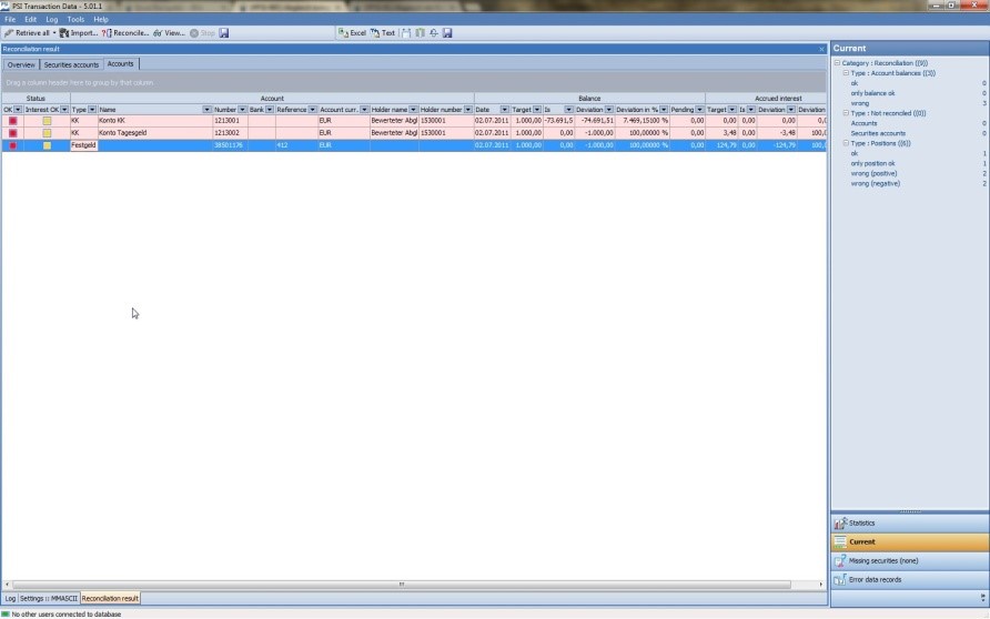 From the result of the assessed reconciliation on the "Accounts" tab, you can find the following further information compared to the classic reconciliation:
